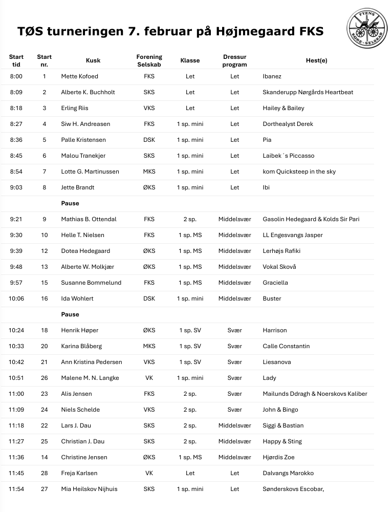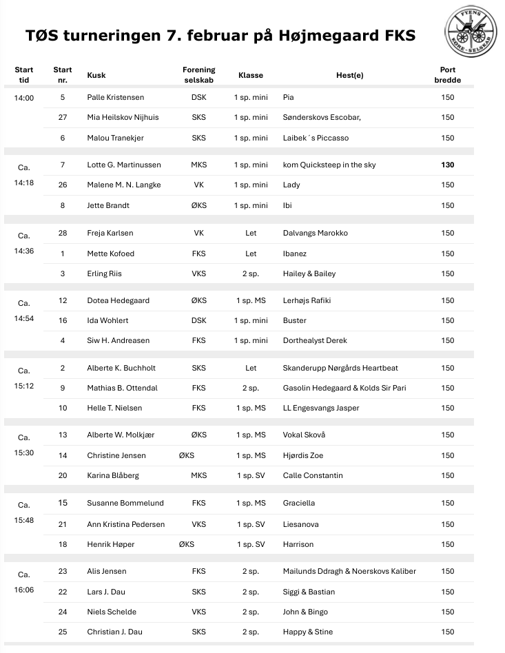 Baneskitse - det er en skitse og banen kan variere på dagen.