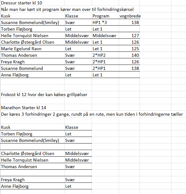 groom eller vogn med en anden deltager, skal dette skrives på tilmeldingen. Tilmelding: